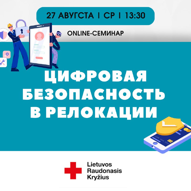 Литовский Красный Крест приглашает вас зарегистрироваться и принять участие вонлайн-лекции “Цифровая безопасность в релокации“, которая состоится в среду 27 августа в 13:30!