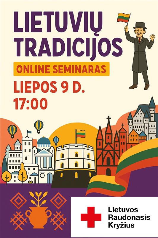 Литовский Красный Крест приглашает на онлайн-семинар “Государственные праздники Литвы” из цикла «Литовские традиции. Лекции на литовском языке», который состоится в среду 9 июля в 17:00.