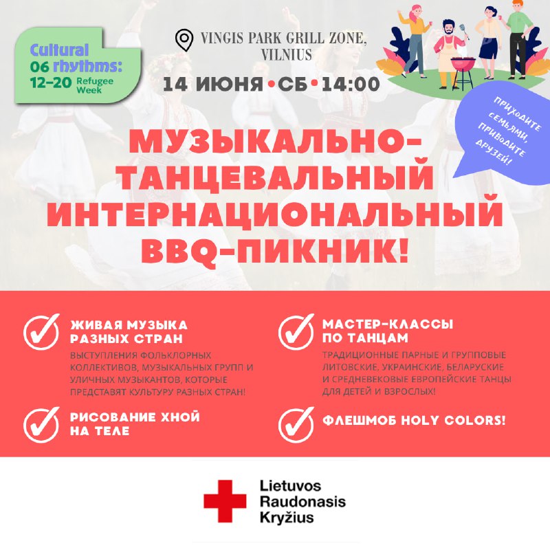 Друзья, приглашаем всех на музыкально-танцевальный интернациональный пикник в гриль-зону Вингис Парка 14 июня в 14:00.