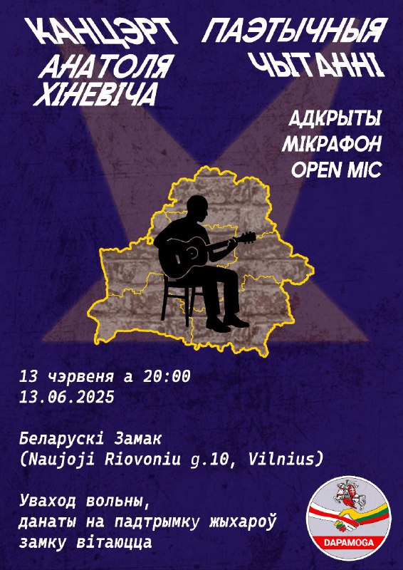 Канцэрт Анатоля Хіневіча | Паэтычныя чытанні Адкрыты мікрафон / Open MicЗапрашаем на вечар жывога слова і шчырай музыкі у Беларускім Замку — прасторы супольнасці, дзе гучаць голасы, якім ёсць што сказаць.
