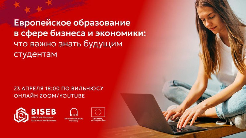 Запрашаем вас на анлайн-сустрэчу “Еўрапейская адукацыя ў сферы бізнэсу і эканомікі: што важна ведаць будучым студэнтам”.