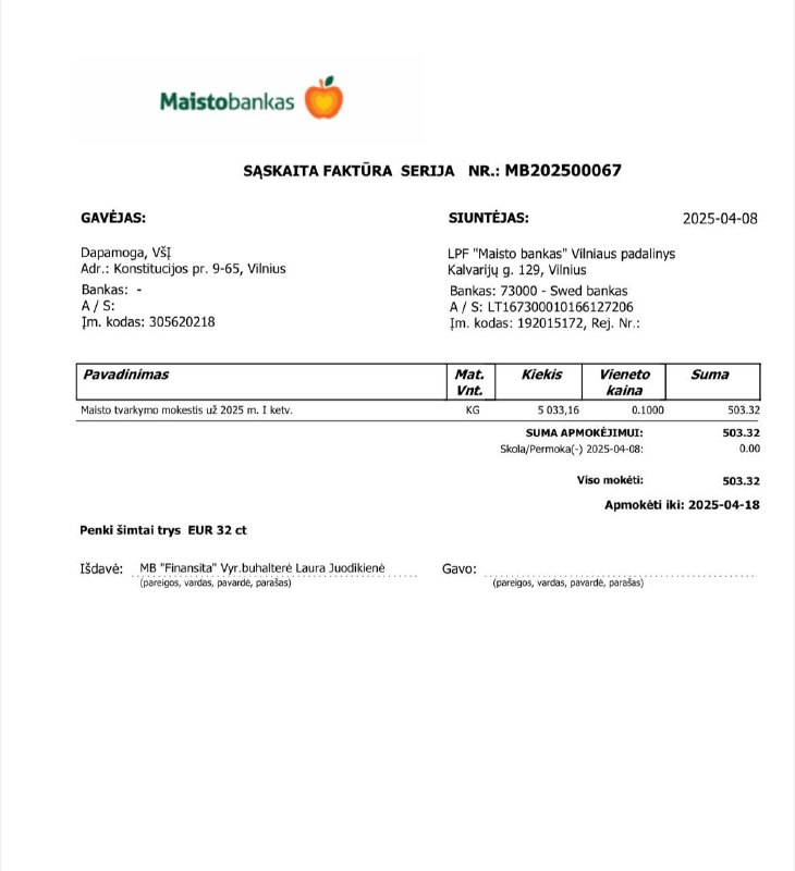 Maistobankas – €503 (не так шмат за тры месяцы)
