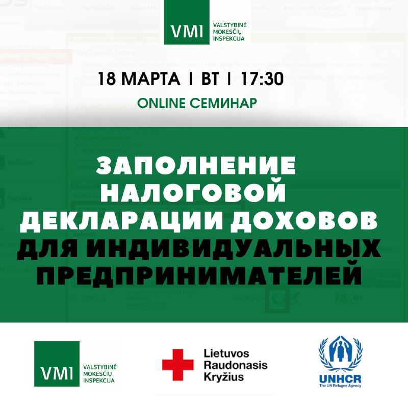 Литовский Красный Крест приглашает мигрантов принять участие в онлайн-семинаре с представителем Государственной Налоговой Инспекции. Спикер расскажет и покажет, как индивидуальным предпринимателям правильно подать годовую декларацию доходов для возвращения налогов.