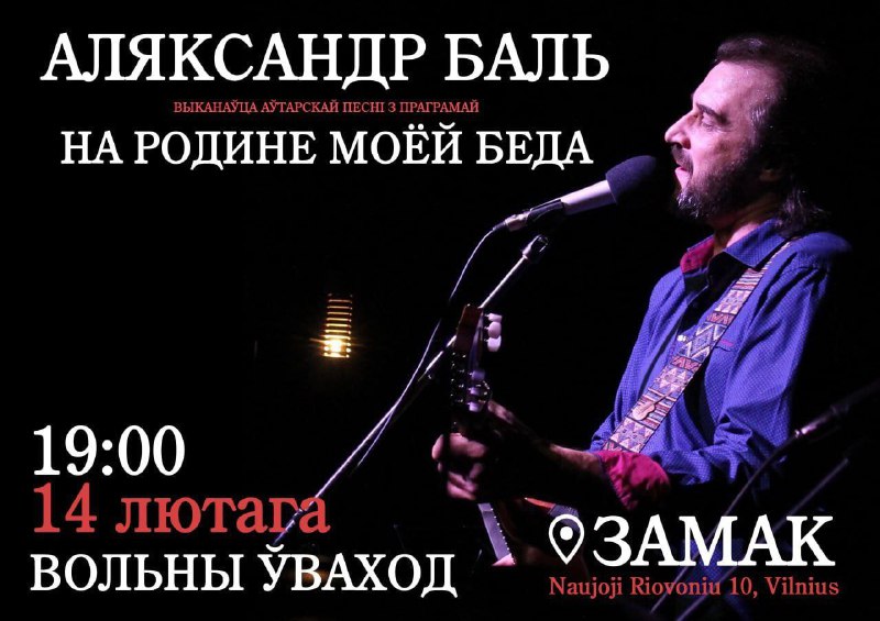 14 лютага а 19:00 запрашаем вас на канцэрт Аляксандра Баля ў Беларускім Замку!