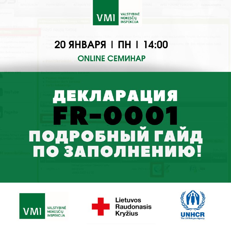 Lithuanian Red Cross приглашает вас зарегистрироваться и принять участие в онлайн-семинаре от VMI “Декларация FR-0001: подробный гайд по заполнению!“, который состоится в понедельник 20 января в 14:00!