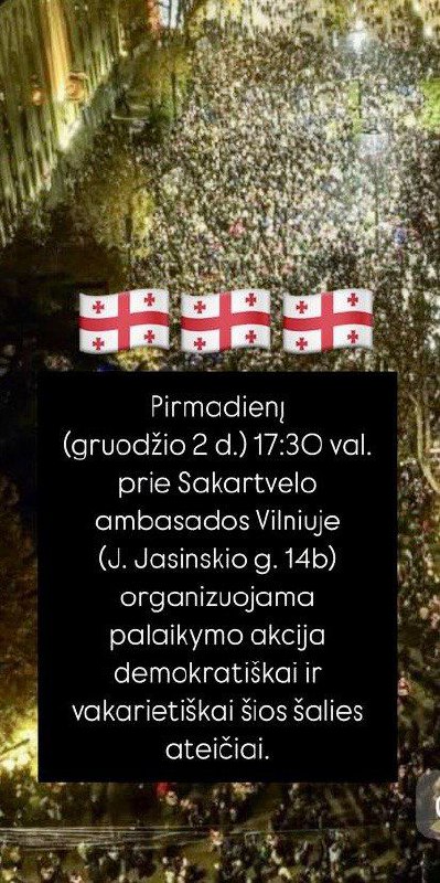 2 снежня а 17:30 каля амбасады Сакартвела ў Вільні ладзіцца акцыя ў падтрымку дэмакратычнай і заходн…