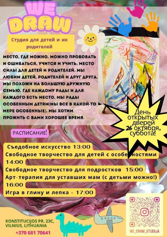 26.10.24 студыя “We draw” запрашае на Дзень адчыненых дзвярэй!Мы пра свабодную творчасць для дзяцей …