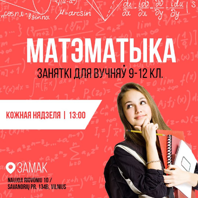 Шаноўныя сябры,Нагадваем, што сёння ў Замку заняткі па матэматыцы для вучняў 9-12 класаў з прафесі… 17.03.2024Dapamoga LT | Замак у Вільнюсе Шаноўныя сябры,Нагадваем, што сёння ў Замку заняткі па матэматыцы для вучняў 9-12 класаў з прафесійным настаўнікам, далучайцеся!Папярэдняя рэгістрацыя тутака> Заняткі – бясплатныя Нядзеля 17 сакавіка | 13:00 Замак, 2 паверх | Naujoji Riovoniu, 10, Vilnius Расклад заняткаў у Замку на тыдзень 11-17 сакавіка: Панядзелак 11:00 – Заняткі па фізічнай культуры з элементамі ёгі. 12:30 – Pokalbiai lietuvių kalba – Размовы на літоўскай мове пад гарбату. Пятніца 18:00 – Індывідуальныя кансультацыі па пытаннях…