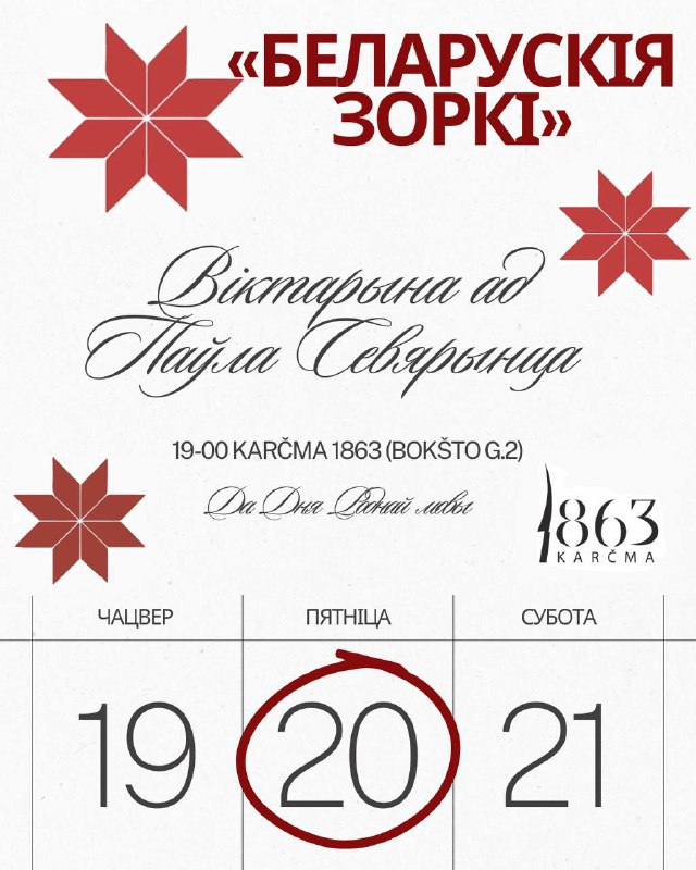 Э-эх, згадаем маладосць, сябры! )) Запрашаю на беларускую віктарыну да дня роднай мовы – 20 лютага, 19.00, віленская “Карчма”. Гісторыя, геаграфія, мова, культура, спорт, феномены, асобы… Хочаце выйграць добры прыз – прыходзьце з сябрамі. Уваход вольны.