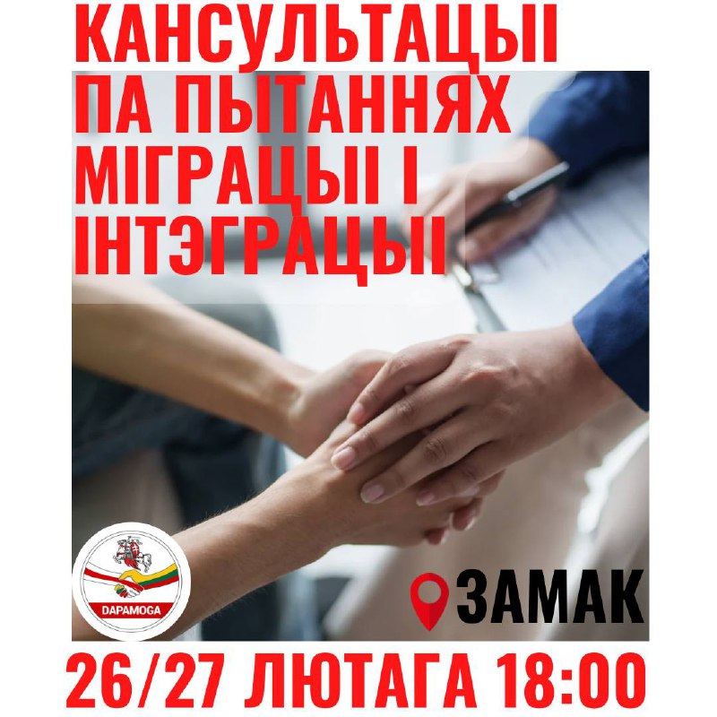 Сёння, у чацвер, 26 лютага, і заўтра, ў пятніцу, 27 лютага, з 18:00, кіраўніца Dapamoga Наталля Калегава праводзіць індывідуальныя кансультацыі па пытаннях міграцыі і інтэграцыі.