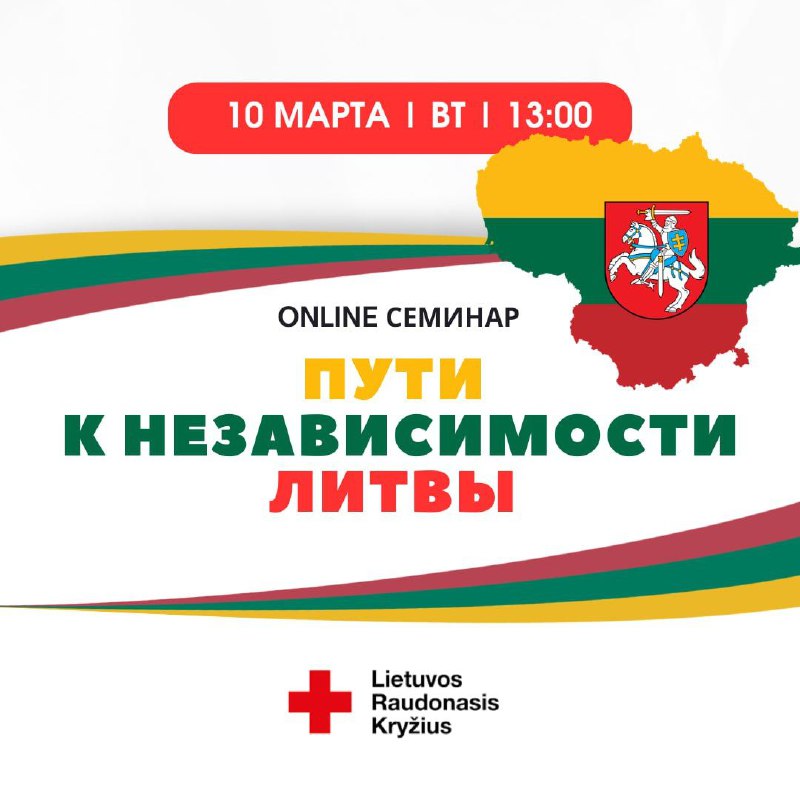 Літоўскі Чырвоны Крыж запрашае вас на бясплатны анлайн-семінар «Шляхі да літоўскай незалежнасці», які адбудзецца ў аўторак, 10 сакавіка, а 13:00.