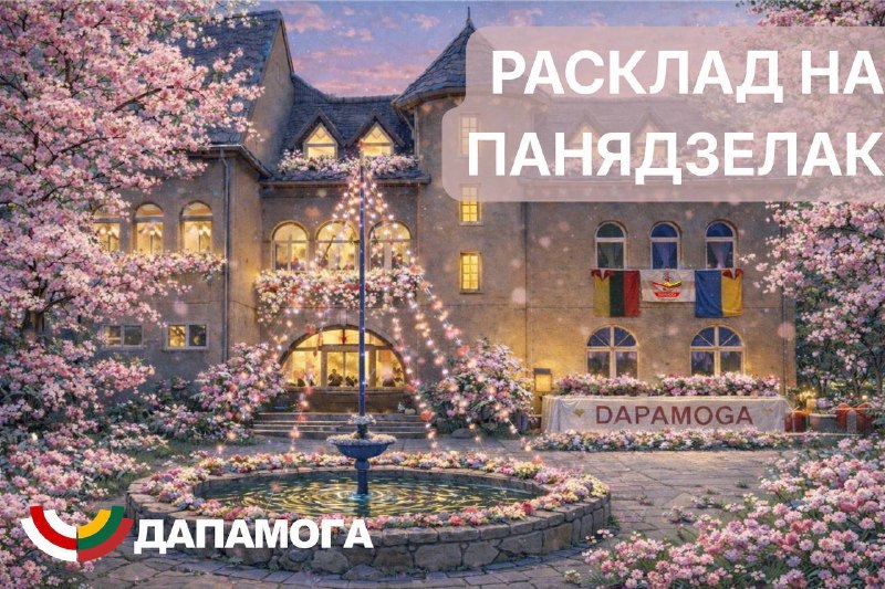 Панядзелак, 13 красавіка18:00 – 21:00 – пляценне маскіравальных сетак для Украіны ў Беларускім Зам… 13.04.2026Dapamoga LT | Замак у Вільнюсе Панядзелак, 13 красавіка18:00 – 21:00 – пляценне маскіравальных сетак для Украіны ў Беларускім Замку18:30 – панядзелкавы мітынг салідарнасці з Украінай на Кафедральнай плошчы⸻Нагадваем пра збор на рэтрыт для былых палітвязынак Ужо сабрана: 11 011 €Данат можна даслаць праз нашу новую платформу:https://dapamoga.org/be/donations/retreat-for-political-prisoners