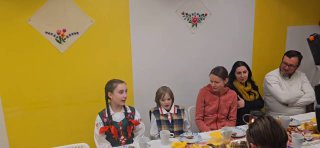 Дзіцячы фальклорны калектыў «Пацеркі» і фальклорны калектыў «Світанак» спелі разам беларускую народную песню «Мядуніца».