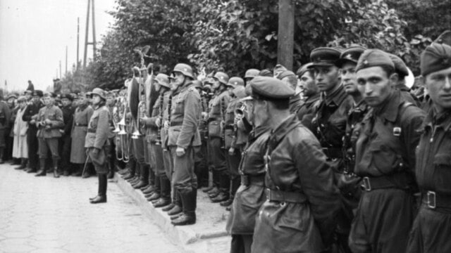 На фота: супольны парад Вэрмахту і Чырвонай арміі, 22 верасьня 1939