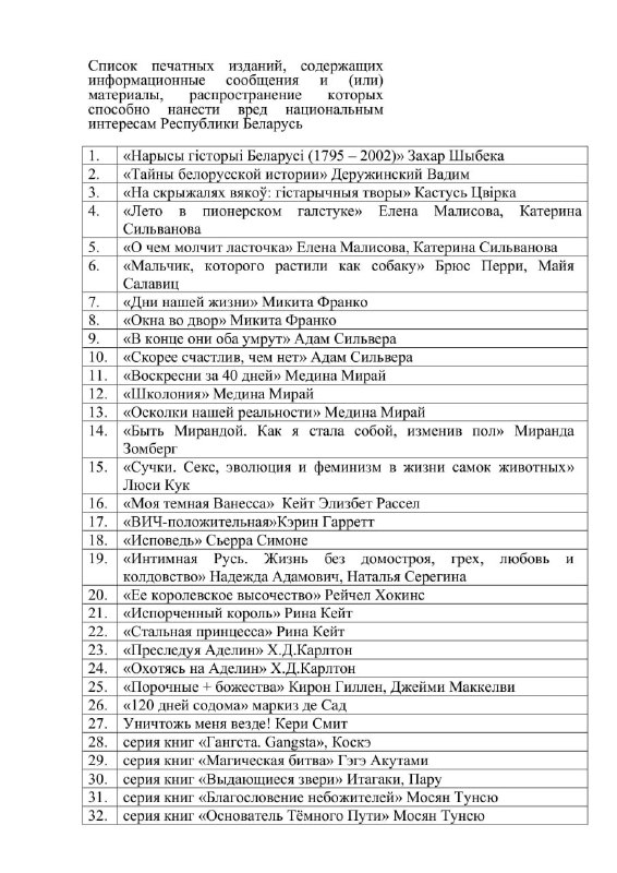Министерство цензуры расширило перечень запрещённых к распространению изданий ещё на 32 позиции. В «чёрный список» попали в том числе книги беларусского писателя Саши Филипенко — «Слон» и «Красный крест».