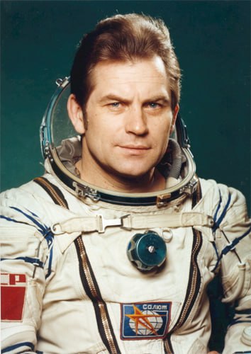 9 кастрычніка 1977 году беларус Уладзімер Кавалёнак (на абодвух фота) зьдзейсьніў свой першы палёт у космас на караблі «Саюз-25» у якасьці камандзіра. Агулам ён тройчы бываў у космасе (1977, 1978, 1981) і правёў там 216 дзён.