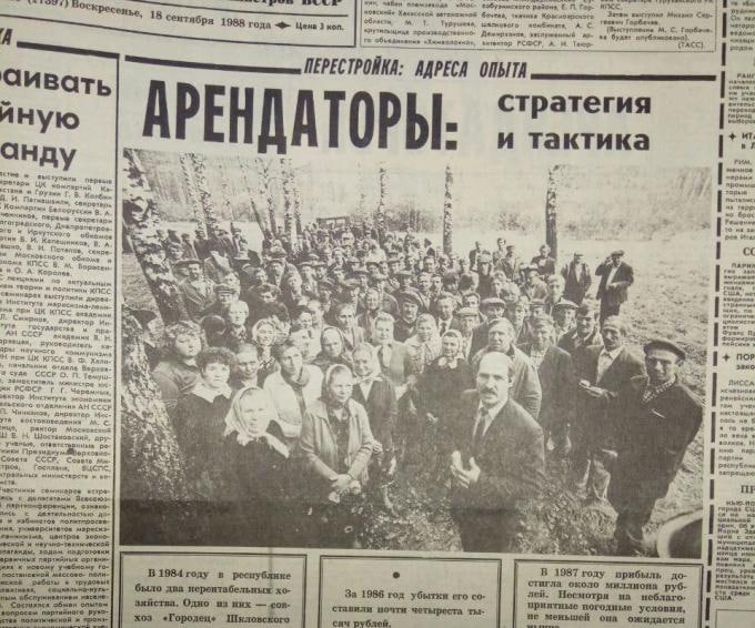 Статья называлась «Арендаторы: стратегия и тактика» и рассказывалось в ней о том, как молодой экспериментатор Александр Лукашенко превратил убыточное хозяйство в прибыльное.