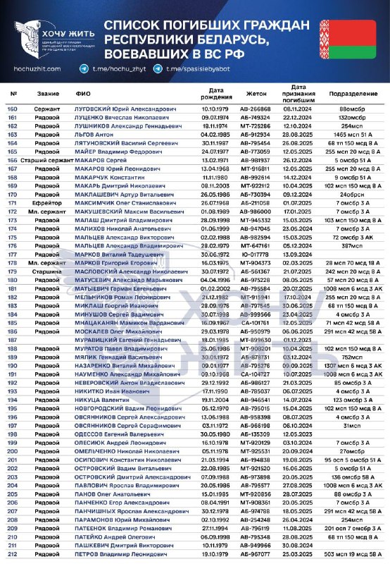 Украинский проект «Хочу жить» опубликовал шокирующий, но неполный список из 314 граждан Беларуси, которые погибли, воюя на стороне России. Это огромная цифра, особенно на фоне того, что на стороне Украины за то же время погибло около 70 беларусов.