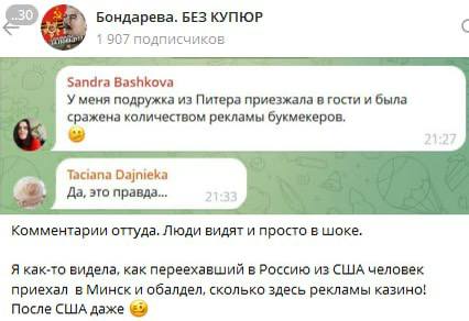 Улады, якія прапаведуюць «маральнасць», фактычна адкрылі шлюзы для бізнесу, які разбурае дабрабыт насельніцтва, прапаноўваючы ілюзію лёгкіх грошай замест рэальнай працы. Гэты цынізм настолькі відавочны, што нават «змагарка за рэжым»