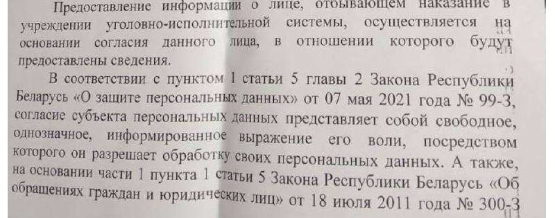 Юрыст:кі «Вясны» збіраюць выпадкі, калі сваякам палітзняволеных адмовілі ў прадастаўленні інфармацыі… 16.10.2025Мінск Навіны Юрыст:кі «Вясны» збіраюць выпадкі, калі сваякам палітзняволеных адмовілі ў прадастаўленні інфармацыі аб зняволенам са спасылкай на абарону персанальных дадзеных Калі ласка, пішыце на @zvarot96. Гэта ананімна.
