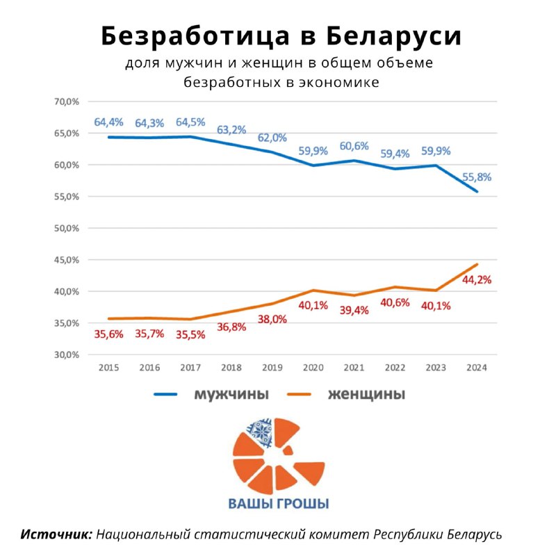 На первый взгляд, официальная статистика выглядит оптимистично: безработица в Беларуси низкая, и при этом еще и снижается. Но если заглянуть глубже, в гендерный аспект, заметен тревожный тренд. Структура занятости меняется: мужчины быстрее возвращаются на рынок труда, тогда как для женщин путь обратно становится сложнее.
