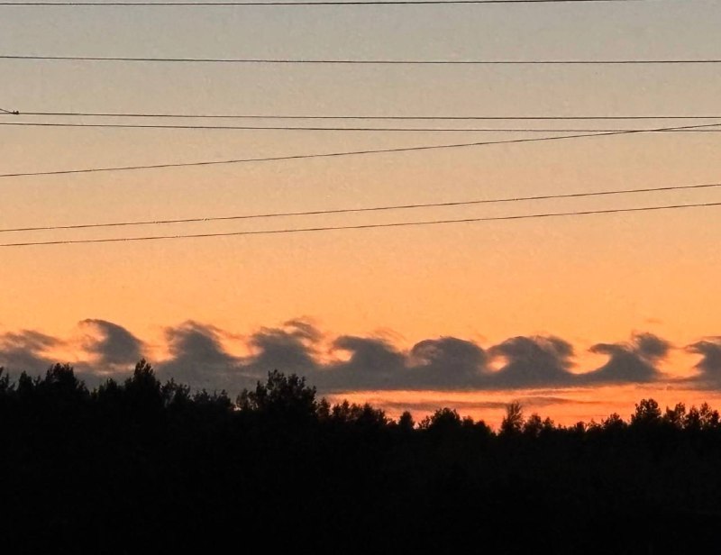 Неустойчивость Кельвина-Гельмгольца на закате в Ракове, Воложинского района.@svetiluch… 16.10.2025Мінск Навіны Неустойчивость Кельвина-Гельмгольца на закате в Ракове, Воложинского района. @svetiluch