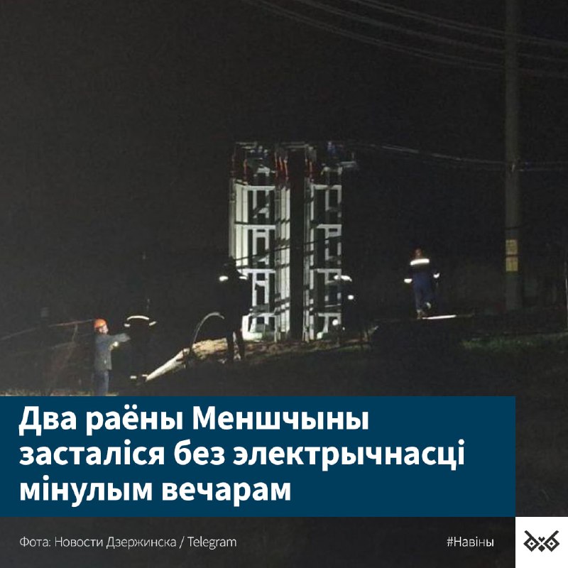 У Дзяржынскім і Стаўбцоўскім раёнах не было святла больш як тры гадзіныАгулам «канец святла» наступ… 24.10.2025Мінск Навіны У Дзяржынскім і Стаўбцоўскім раёнах не было святла больш як тры гадзіны Агулам «канец святла» наступіў амаль у 200 населеных пунктах. Неўзабаве пасля апоўначы электразабеспячэнне аднавілася. Вось у чым была прычына