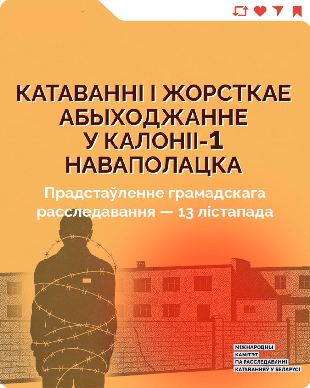 Міжнародны Камітэт па расследаванні катаванняў у Беларусі 13 лістапада апублічыць сваё новае грамадскае расследаванне пра Наваполацкую папраўчую калонію №1 — адну з самых закрытых і рэпрэсіўных устаноў пенітэнцыярнай сістэмы сучаснай Беларусі, дзе да 30% зняволеных — гэта фігуранты палітычных спраў.