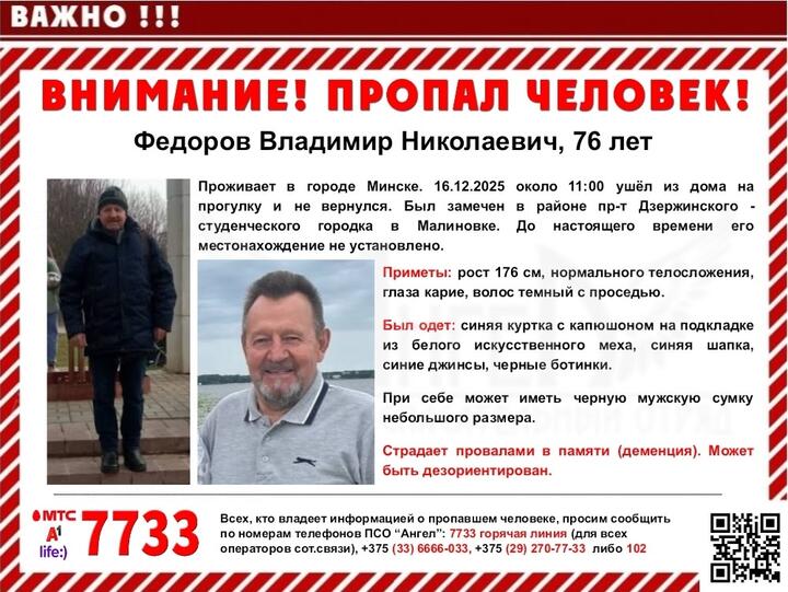 В Минске нашелся пропавший 76-летний Владимир Федоров. «Уже дома у мамы!». https://zerkalo-access.si… 18.12.2025Мінск Навіны В Минске нашелся пропавший 76-летний Владимир Федоров. «Уже дома у мамы!». https://zerkalo-access.site/news/accidents/116190.html?tg=5 Не работает ссылка? Попробуйте эту, из Беларуси — с VPN. Скачайте наше приложение для Android или iOS.