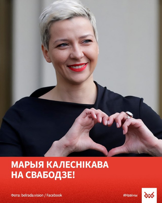 Марыя Калеснікава на свабодзе!Таццяна Хоміч толькі што паразмаўляла па тэлефоне са сваёй сястрой Ма… 13.12.2025Мінск Навіны Марыя Калеснікава на свабодзе! Таццяна Хоміч толькі што паразмаўляла па тэлефоне са сваёй сястрой Марыяй Калеснікавай — яна на волі. Нашыя журналісты ўжо рыхтуюць адмысловае выданне. Далучайцеся неўзабаве
