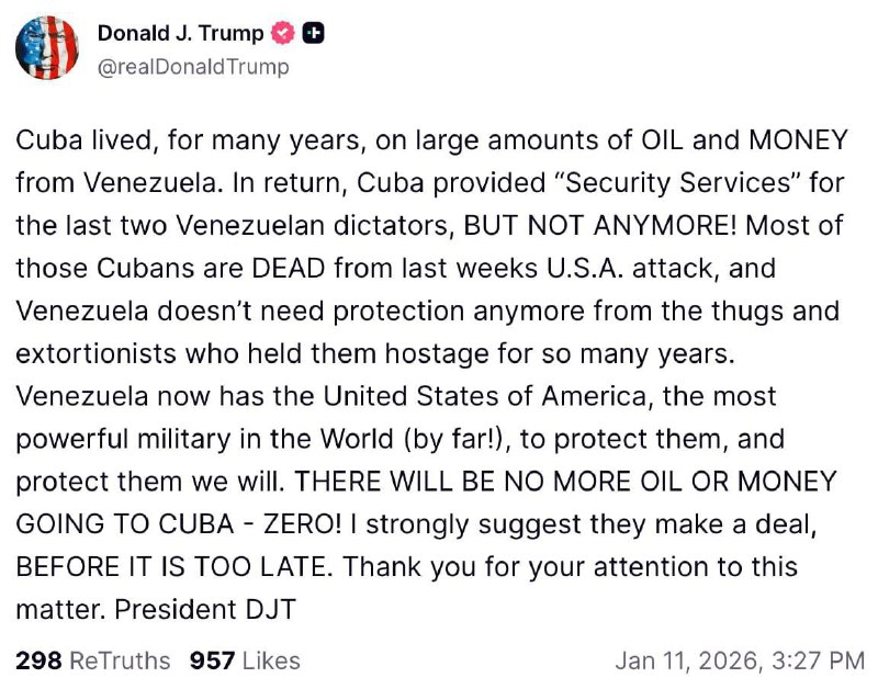 После ареста Мадуро и активизации флота США в Карибском регионе доставлять “братскую помощь” на Кубу не получится.