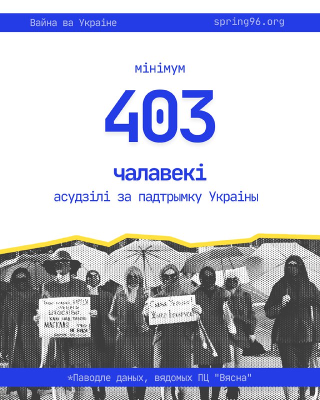 За четыре года войны в Беларуси за поддержку Украины осудили минимум 403 человека