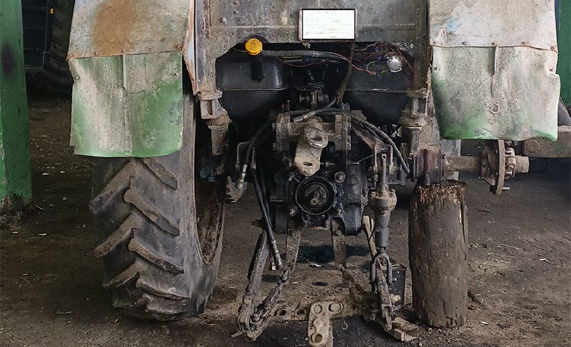 Опасность для жизни: Технику чинят с нарушением правил безопасности — тракторы подпирают деревянными брусками, рискуя здоровьем работников.