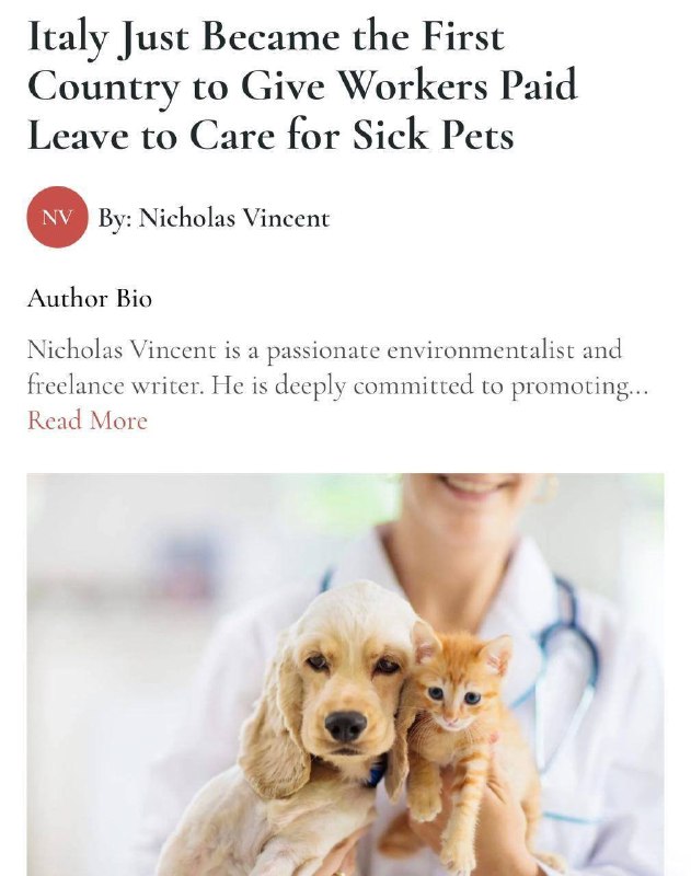 Решение приняли благодаря судебному прецеденту: еще в 2017 году суд в Риме встал на сторону женщины, которая осталась дома ухаживать за тяжело больной собакой. Суд признал, что отказ помочь животному мог бы считаться нарушением закона.