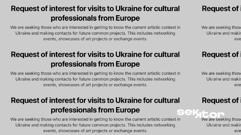 → Украінскія культурныя ініцыятывы запрашаюць культурных прафесіяналаў/-к з Еўропы далучыцца да даследчага візіту ў Кіеў, каб пазнаёміцца з сучасным мастацкім кантэкстам Украіны і закласці аснову для будучых супольных праектаў.