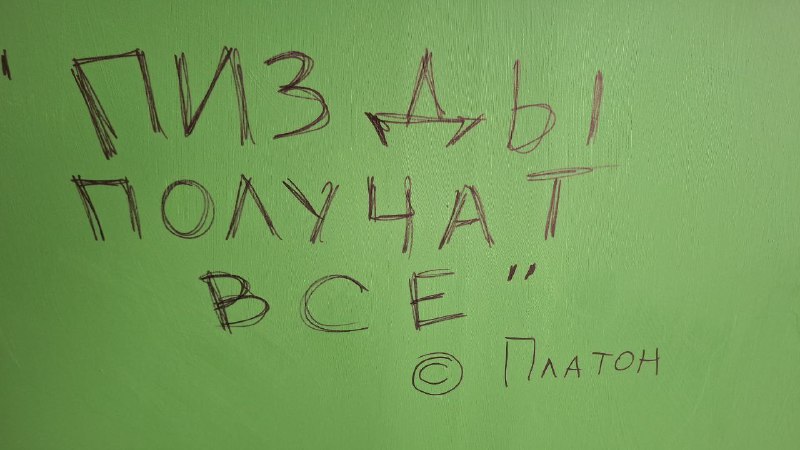 Среди таких граффити, появившихся между картин, вывешенных «в подъезде», и были написаны фразы «Путин – хуйло», «Лукашенко – петух», «Пизды получат все», и т.д.