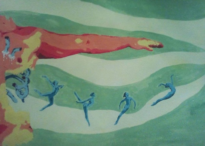 дня 8 марта откопал свой старый рисунок от далекого вроде бы 2017 года. Акварелью из тюбика по плотной бумаге.