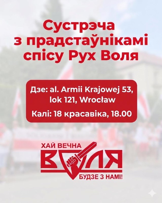Ва Уроцлаве адбудзецца перадвыбарчая сустрэча з прадстаўнікамі спісу Рух Воля!