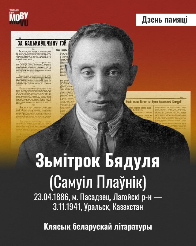 Сёньня дзень памяці Зьмітрака Бядулі. Пісьменьніку паставілі помнік на Ўсходніх могілках у Менску, дзе яго перапахавалі 5 гадоў таму. Бядуля — аўтар ня толькі твораў, памятных кожнаму з школьных гадоў, але і рамантычных незалежніцкіх вершаў з зборніка „Пад родным небам“ (1922), і пранікнёнага закліку да беларускіх ваяроў трымацца роднае мовы.