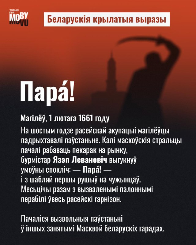 У кожнай мове ёсьць крылатыя выразы — напаміны пра гістарычныя падзеі, знакавыя для адпаведнага народу. Такія выразы, напоўненыя асацыяцыямі і гістарычнай мудрасьцю, — важны складнік моўнай і нацыянальнай сьвядомасьці. Як гэты спокліч-пароль Магілёўскага паўстаньня 365 гадоў таму.