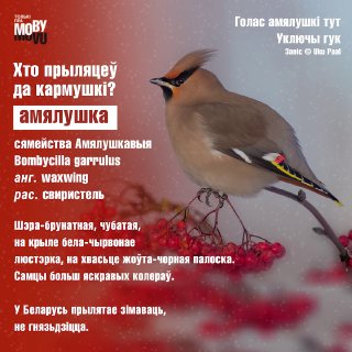 Амялушкі ўзімку ў Беларусі госьці ня надта частыя, але цешаць вока сваёю прыгажосьцю. Назва ад амялы… 18.02.2026Вольны Захад інфа Амялушкі ўзімку ў Беларусі госьці ня надта частыя, але цешаць вока сваёю прыгажосьцю. Назва ад амялы́, куста, які расьце на дрэвах і ягады якога любяць птушкі.