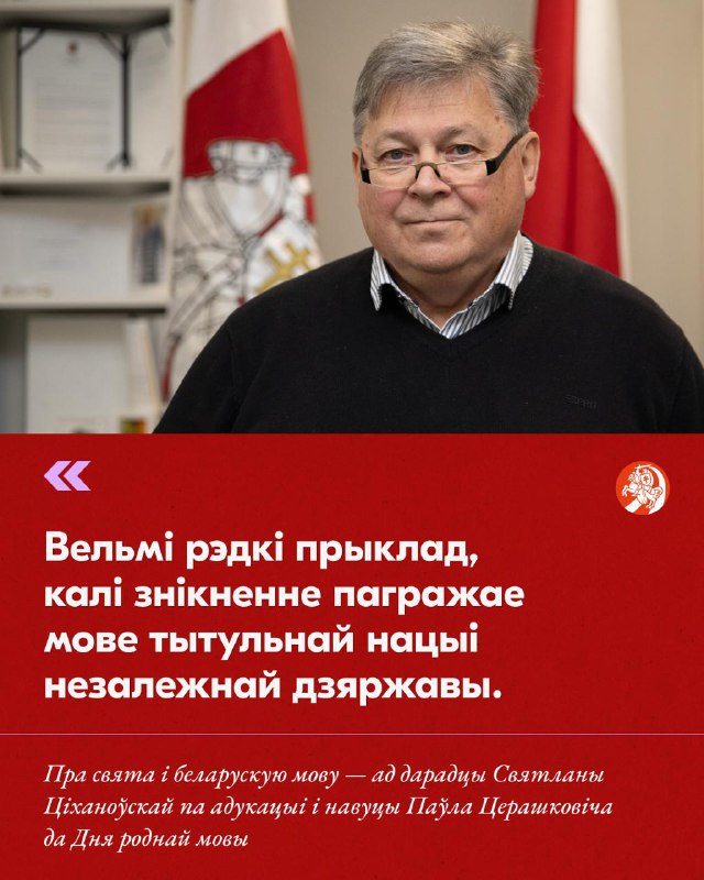 У картках — некалькі тэзаў пра Дзень роднай мовы і стан беларускай мовы ад дарадцы Святланы Ціханоўскай па адукацыі і навуцы Паўла Церашковіча.